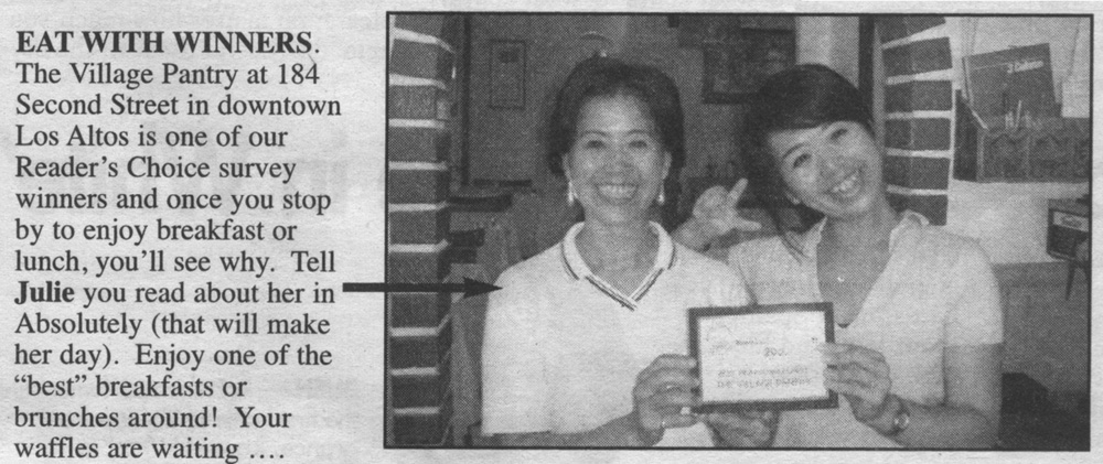 Palo Alto Daily News -- Best Brunch 2005 Article: The Village Pantry -- Winner 2005 Best Brunch/Breakfast Award and 2nd Place Best American Restaurant
